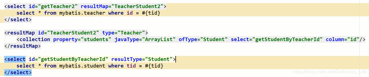 <select id="getStudent2" resultMap="StudentTeacher2">