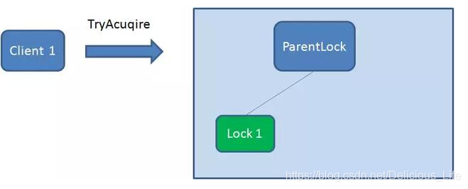 首先在zk中创建一个持久节点ParentLock。当第一个客户端想要获取锁时,需要在ParentLock节点下创建一个临时顺序节点Lock1