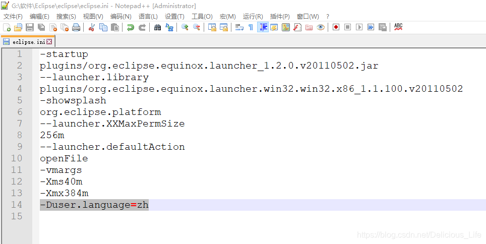 -Duser.language=zh 重新启动eclipse后界面就会显示成中文