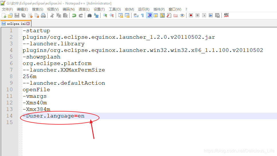 4.如何你想换回英文,还在刚才那个.ini文件的最后一行,改成-Duser.language=en即可