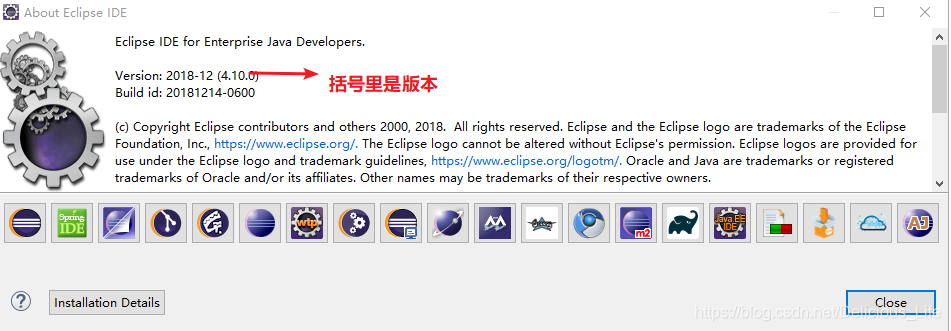 首先看下自己eclipse的版本。打开eclipse——Help——About——Eclipse——IDE。OK,我的版本是4.10.0。