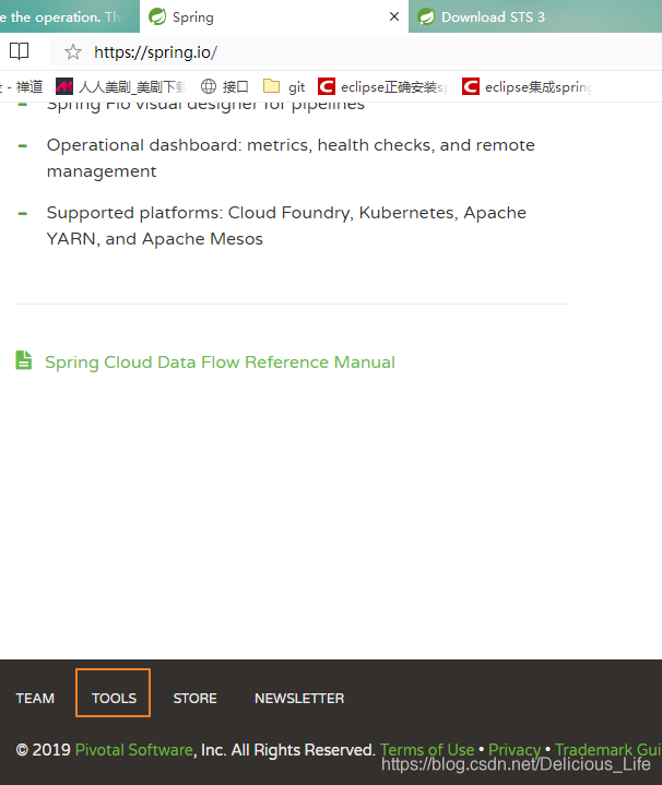 进入spring官网https://spring.io/ 之后拉到最下面,点TOOLS进去