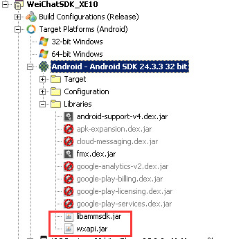 在工程的Libraries中添加libammsdk.jar, wxapi.jar