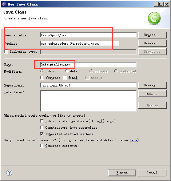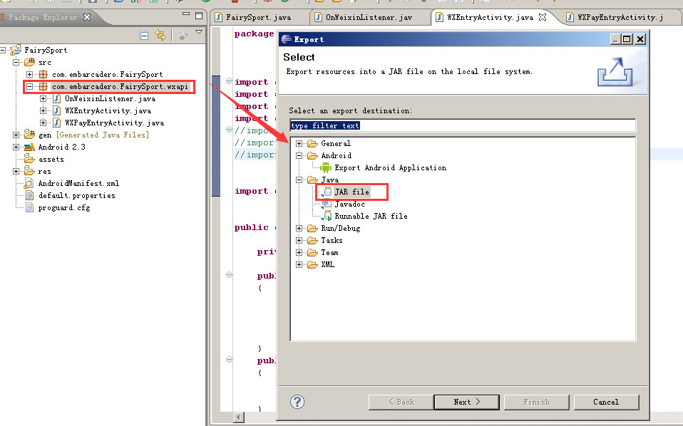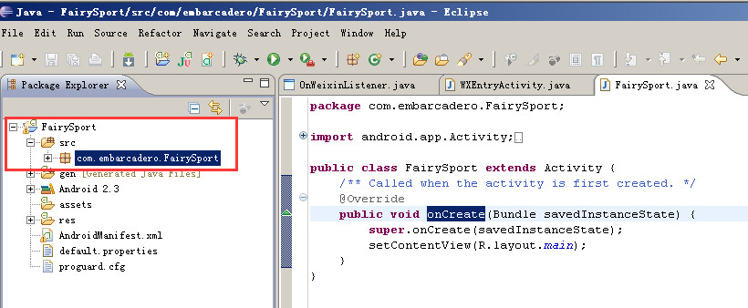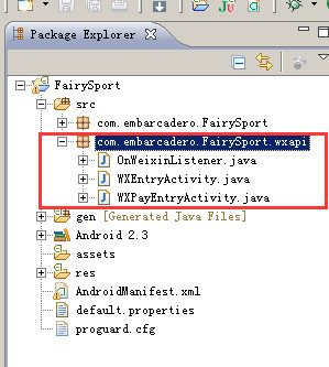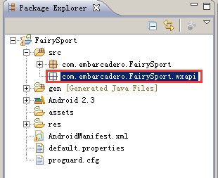 接下来我们创建wxapi.jar所需要的包com.embarcadero.FairySport.wxapi