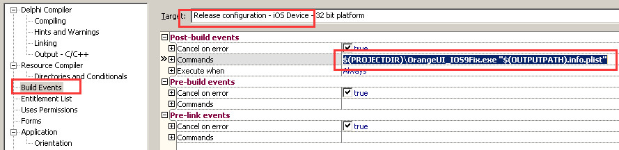 Delphi 10 Seattle 下,把OrangeUI_IOS9Fix.exe, IOSPlistConfig.txt这两个文件拷贝到工程目录下,
