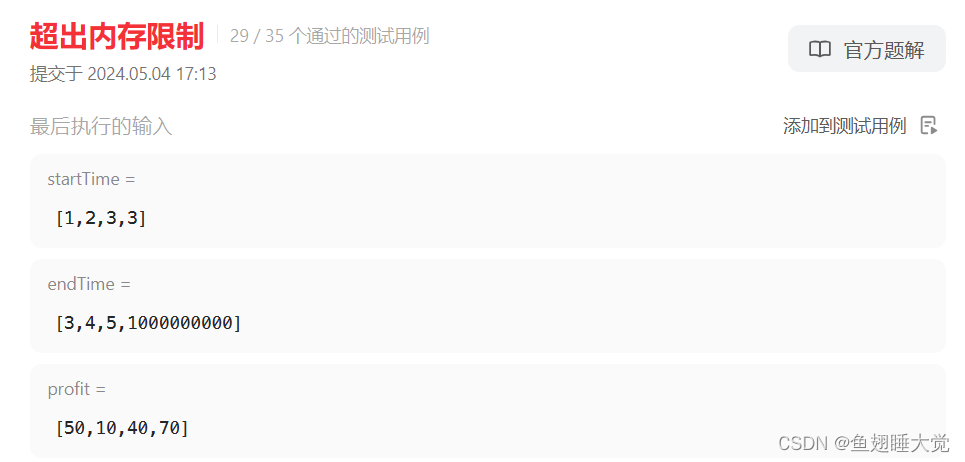 原因是只有四项工作待选,但是用时间划分的话,dp数组的长度有1000000001,显然在这种情况下仍然按时间划分造成了内存极大浪费。