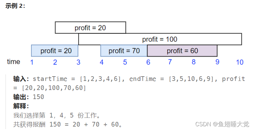 这里有 n 份兼职工作,每份工作预计从 startTime[i] 开始到 endTime[i] 结束,报酬为 profit[i]。