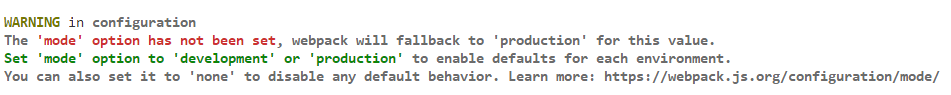 The 'mode' option has not been set, webpack will fallback to 'production' for this value.