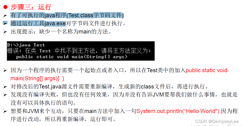 - 通过 java 命令对生成的 class 文件进行 运行 。