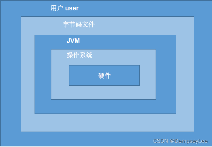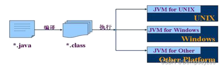 原理:只要在需要运行java 应用程序的操作系统上,先安装一个Java虚拟机(JVM Java Virtual Machine) 即可。由JVM来负责Java程序在该系统中的运行。