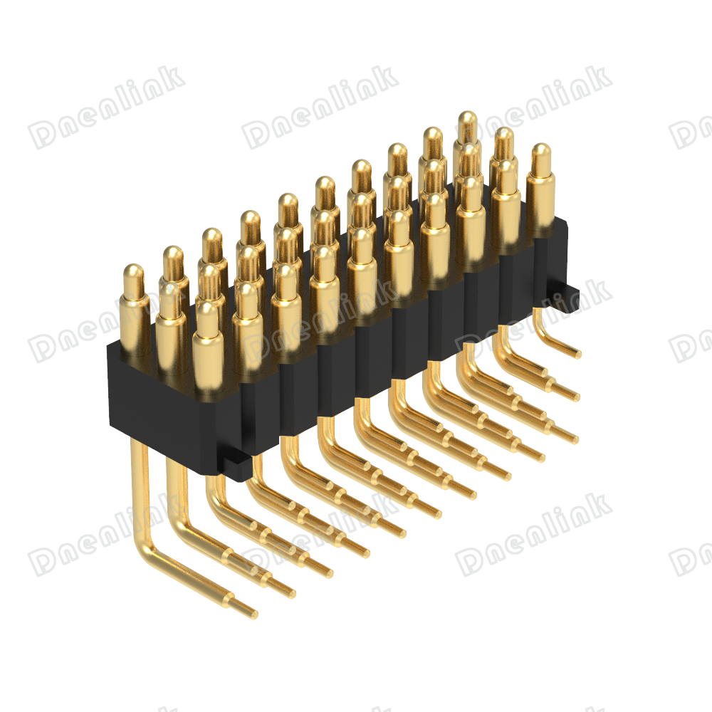 pogo pin连接器从单一的一根单针到几十个单针组合排列,形成了不同产品中的不同连接器外形。产品在多于单针的情况下一般会有一个环保塑胶做的胶套把pogppin固定在一起。胶套一般为黑色。