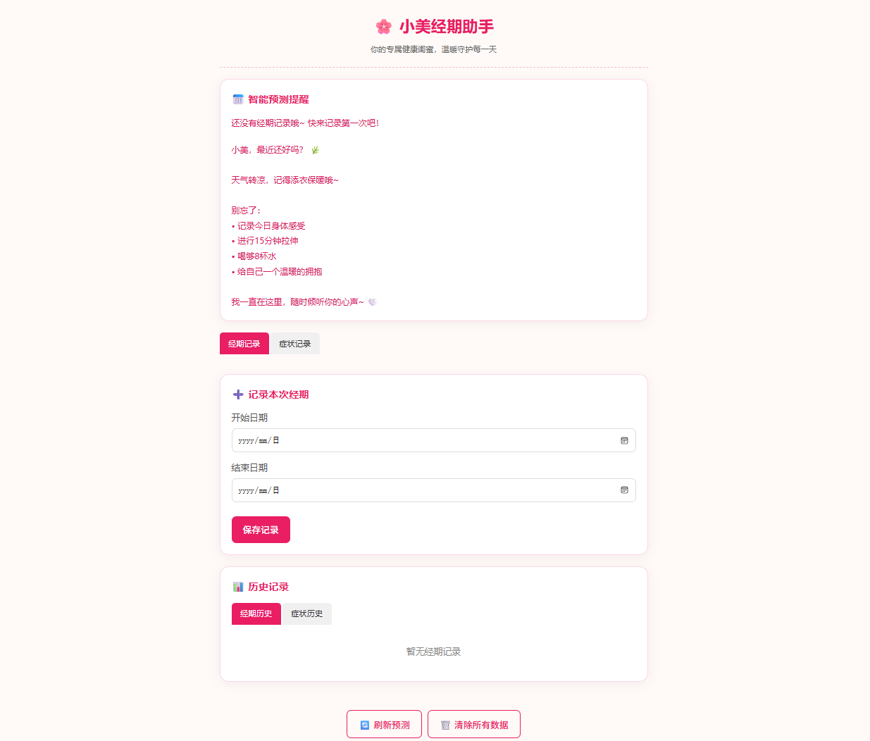 女性经期管理是健康管理的重要组成部分。传统日历应用功能单一,缺乏个性化与情感交互能力。本文设计并实现一个“经期智能数字人”,具备以下核心能力: