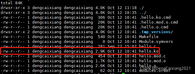 第四步,编写好Makefile后,执行make,最终会生成一个动态模块hello.ko,在此过程中,可能会遇到各种报错,一个一个解决即可
