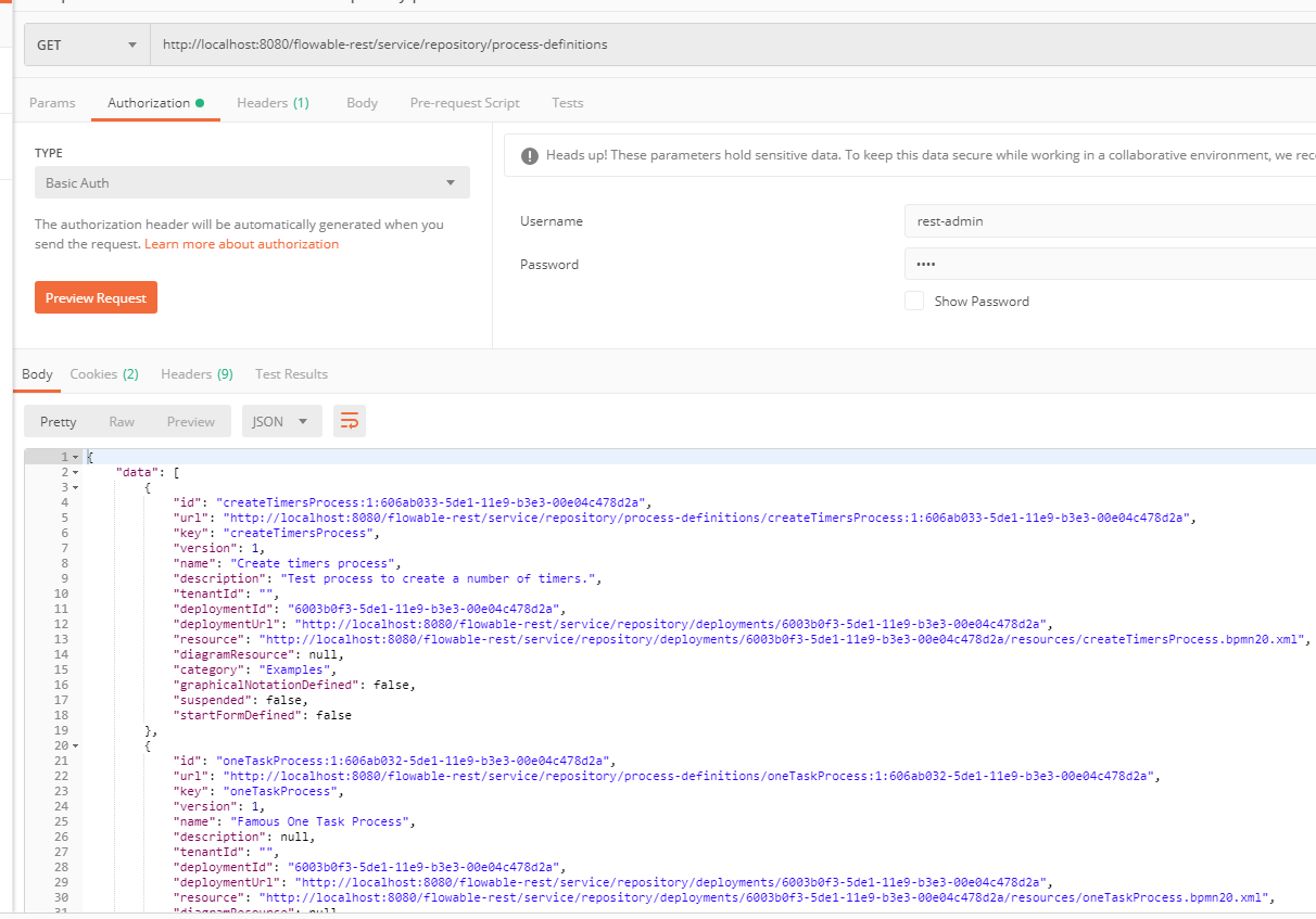 curl --user rest-admin:test http://localhost:8080/flowable-rest/service/repository/process-definitions