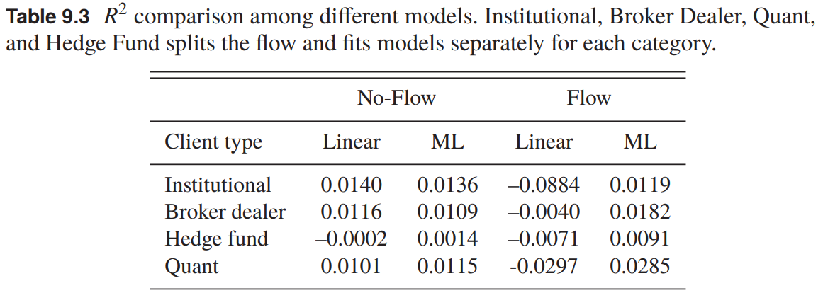 这个结果表明资金流的信息与价格变化有关,且机器学习可以更好地利用高维变量。