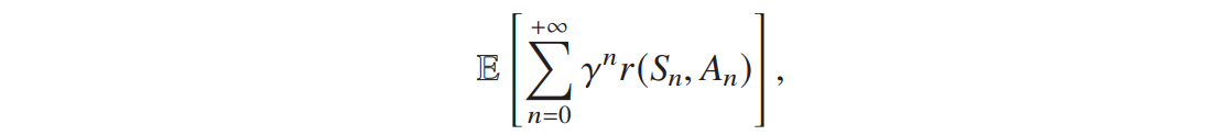 无限 horizon 问题,最大化预期折扣累积奖励,其中 γ∈(0,1) 为折扣因子: