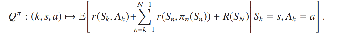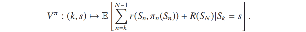 为给定时刻 k 和状态 s 时,从 k 到 N-1 的累积奖励与最终收益的条件期望: