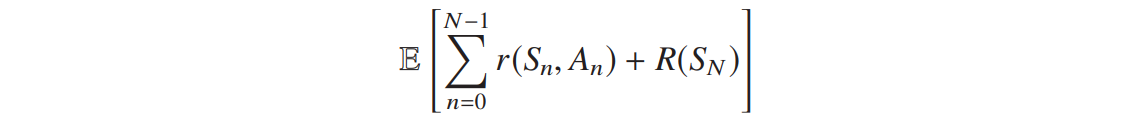 有限 horizon 问题,最大化预期累积奖励与最终收益之和: