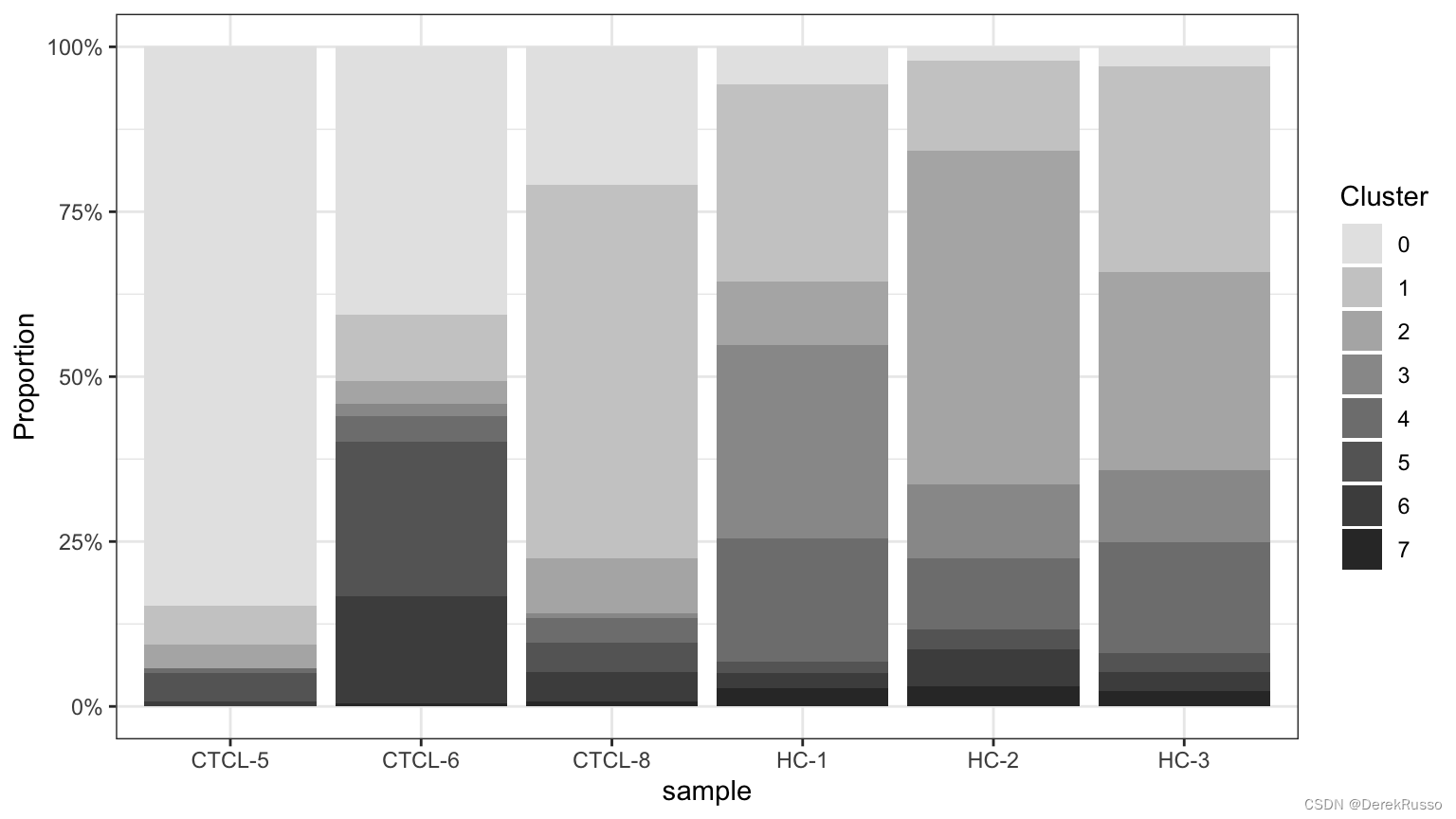 plot_stat(scRNA_int, plot_type = "prop_fill", group_by = "group")
