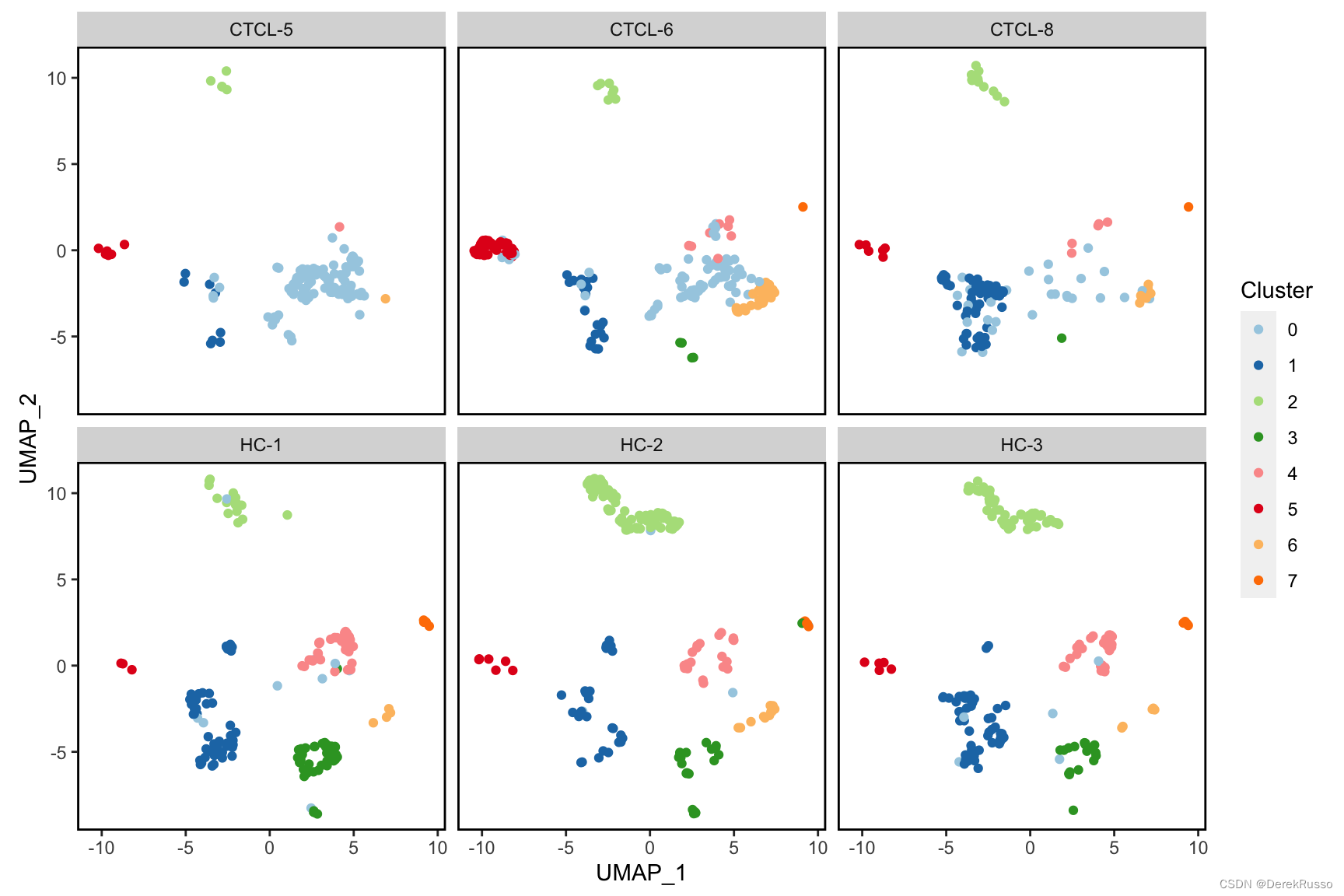 1,color_by: 默认是以seurat cluster绘图,也可以换成metadata里的任何列,如group,sample等