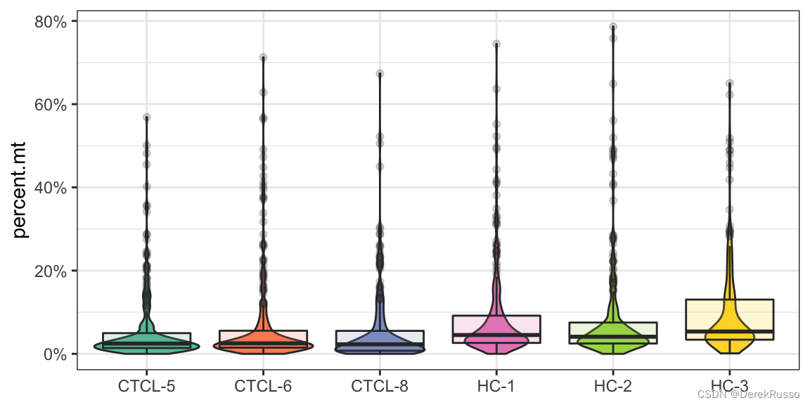 plot_qc(scRNA, metrics = "percent.mt", group_by = "group", pal_setup = pal)