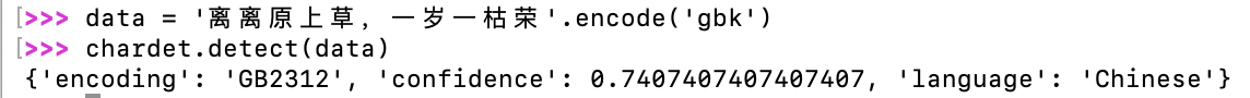 当我们拿到一个bytes时,就可以对其检测编码。用chardet检测编码,只需要一行代码: