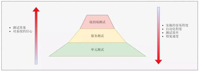 三种测试从上到下实施的容易程度递增,但是测试效果递减。端到端测试最费时费力,但是通过测试后我们对系统最有信心。单元测试最容易实施,效率也最高,但是测试后不能保证整个系统没有问题。