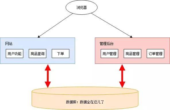 几年前,小明和小皮一起创业做网上超市。小明负责程序开发,小皮负责其他事宜。当时互联网还不发达,网上超市还是蓝海。只要功能实现了就能随便赚钱。所以他们的需求很简单,只需要一个网站挂在公网,用户能够在这个网站上浏览商品、购买商品;另外还需一个管理后台,可以管理商品、用户、以及订单数据。