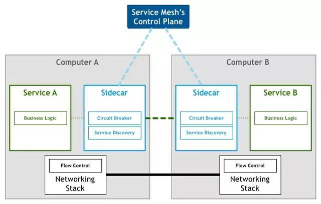 Sidecar只负责网络通信。还需要有个组件来统一管理所有sidecar的配置。在Service Mesh中,负责网络通信的部分叫数据平面(data plane),负责配置管理的部分叫控制平面(control plane)。数据平面和控制平面构成了Service Mesh的基本架构。