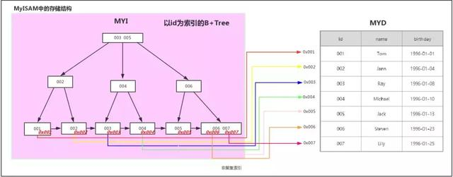 在MyISAM引擎中的实现(二级索引也是这样实现的)