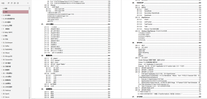 这些资料的内容都是面试时面试官必问的知识点,篇章包括了很多知识点,其中包括了有基础知识、Java集合、JVM、多线程并发、spring原理、微服务、Netty 与RPC 、Kafka、日记、设计模式、Java算法、数据库、Zookeeper、分布式缓存、数据结构等等,以下是文档内容的展示!