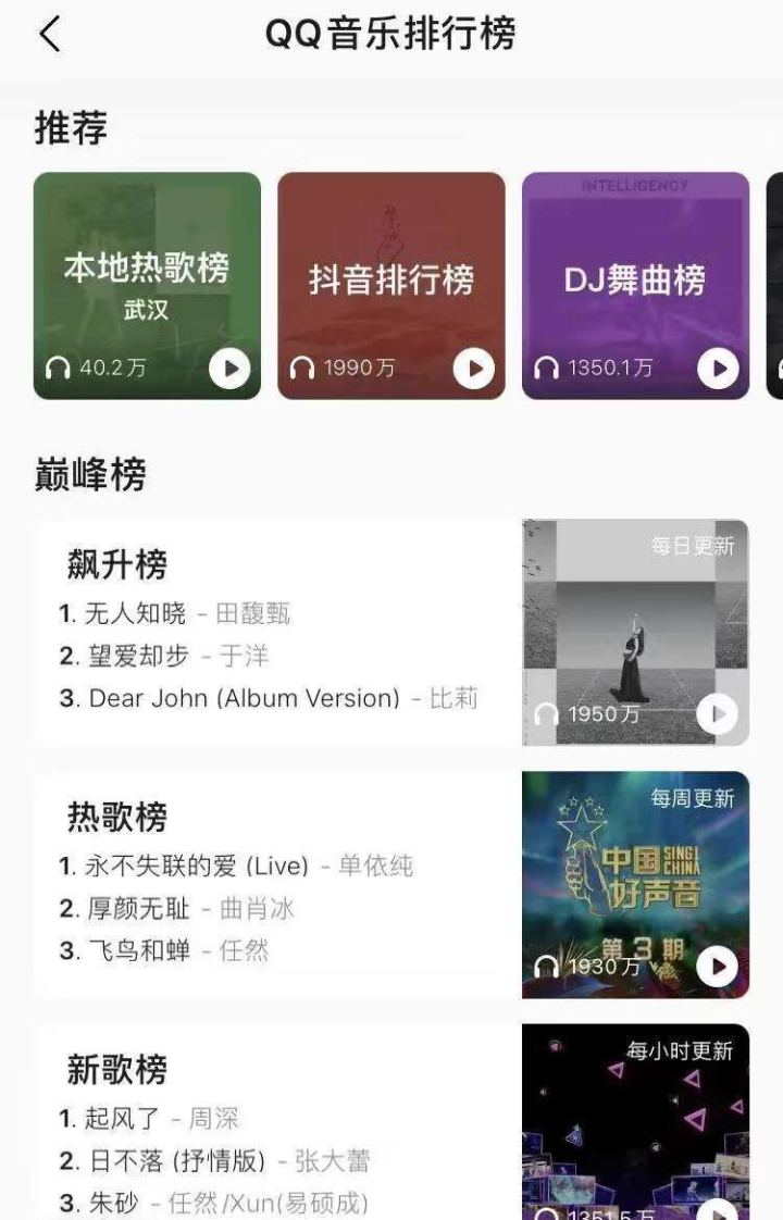 QQ音乐中有多种实时榜单,比如飙升榜、热歌榜、新歌榜,可以用redis key存储榜单类型,score为点击量,value为歌曲id,用户每点击一首歌曲会更新redis数据,sorted set会依据score即点击量将歌曲id排序。