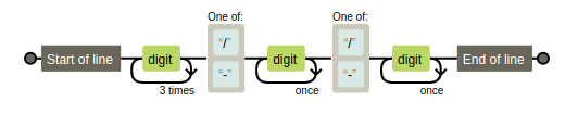 | {n,m} | m 和 n 均为非负整数,其中n <= m。最少匹配 n 次且最多匹配 m 次。例如,"o{1,3}" 将匹配 "fooooood" 中的前三个 o。'o{0,1}' 等价于 'o?'。请注意在逗号和两个数之间不能有空格。 |