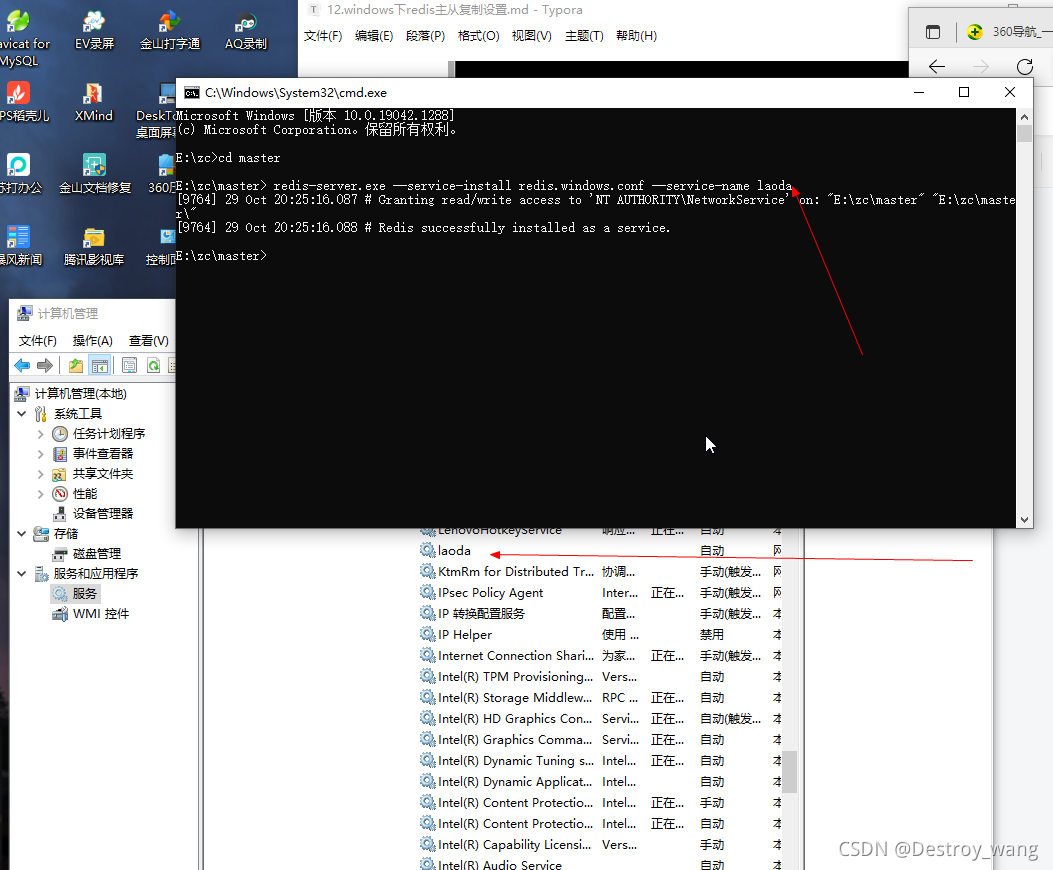 安装服务 redis-server.exe --service-install redis.windows.conf --service-name ****(我们要设置主人在服务里面的名字),然后Entet