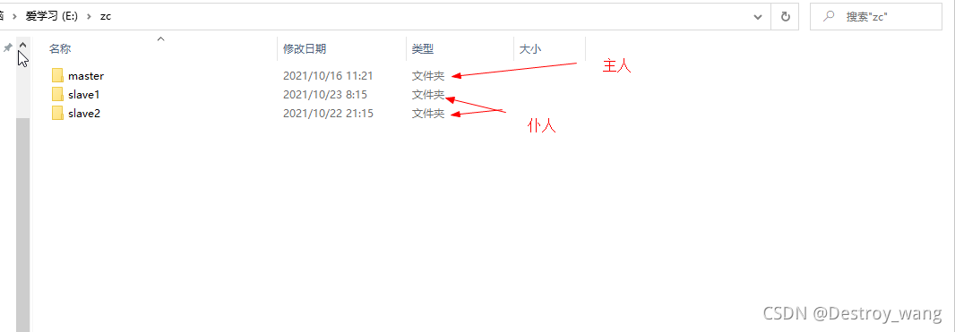 1.首先,在我们的任意盘符下创建一个包,包里面放入我们要配置的一个主人和两个仆人