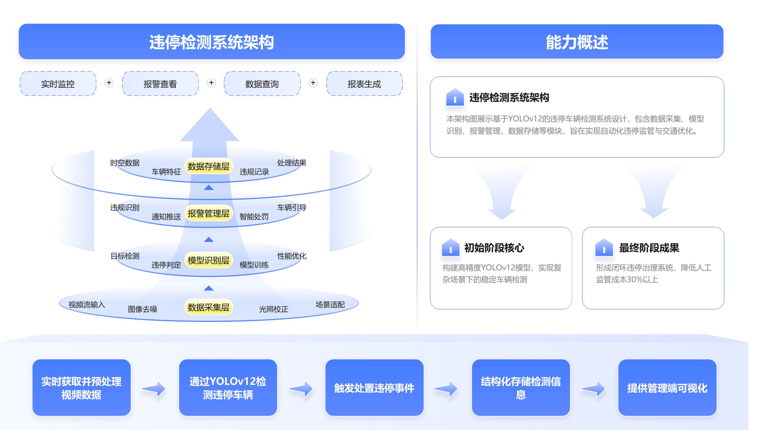 YOLOv12是一款基于卷积神经网络(CNN)的目标检测算法,可以高效地识别图像中的多个目标。在违停车辆检测系统中,YOLOv12能够通过实时视频流快速检测出车辆,并判断是否违停。