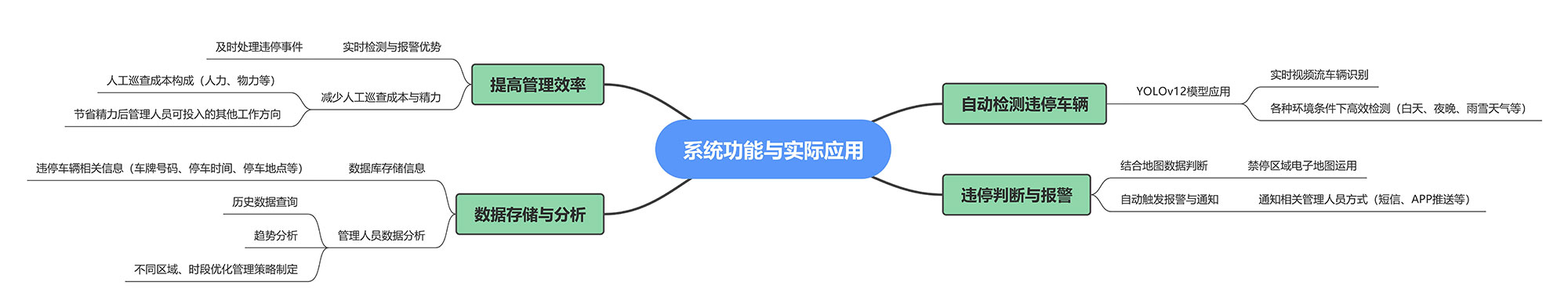 图5 基于YOLOv12的违停车辆检测系统功能与应用图