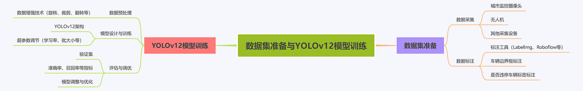 为了训练YOLOv12进行违停车辆检测,首先需要准备一个包含大量违停场景的视频数据集。数据集应包括多种不同的停车场景(如城市街道、停车位、禁停区等),并且标注每个视频帧中车辆的位置、类别(是否违停)等信息。