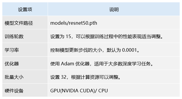 以下是关于ResNet50模型训练过程中的配置文件和超参数设置,并通过配置文件以及相关参数进行训练设置。