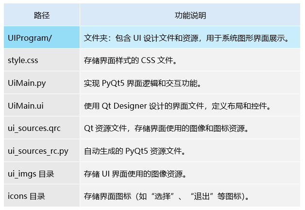 本系统的图形用户界面采用PyQt5框架开发,致力于打造直观、高效且流畅的交互体验。通过精心设计的界面布局和模块化架构,系统功能得以清晰呈现,并确保各项操作的高效执行,全面提升用户使用体验。