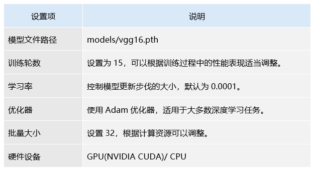 VGG16 和 ResNet50 是两种常用于图像分类任务的深度学习模型。其训练过程主要包括以下几个步骤:配置文件与超参数的设置、训练过程的执行以及训练结果的可视化分析。