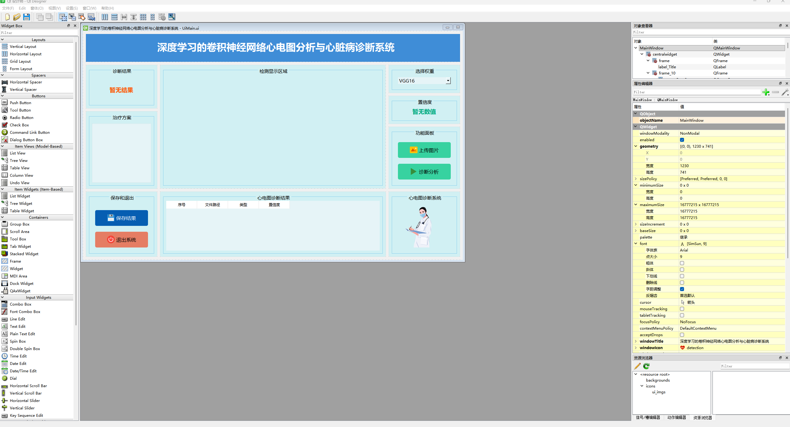 该界面展示了基于PyQt5框架精心设计的心电图分析与心脏病诊断系统,界面布局简洁、直观且高度集成。通过巧妙的模块化设计,系统涵盖了多项功能模块,确保用户能够高效、流畅地进行操作与交互,充分体现了系统在医学领域中的智能化与人性化设计。