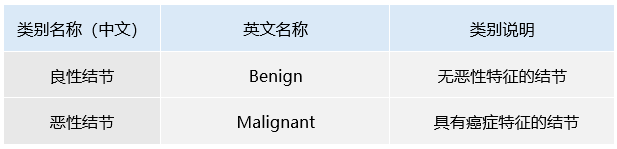 (2)数据结构:包含训练集与测试集,分为两类样本(良性结节、恶性结节)。