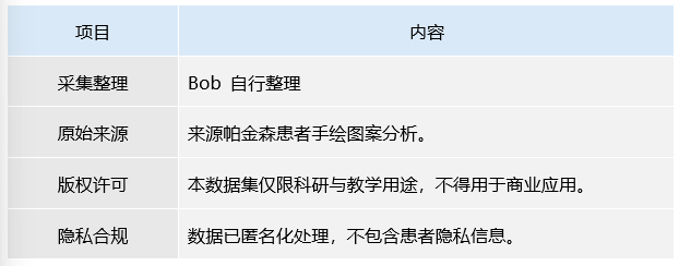 本数据集包含帕金森症不同阶段的手绘图案,包括健康、轻度、中度和重度四个阶段的图像。数据用于Swin Transformer模型训练与验证,助力帕金森症早期智能诊断。