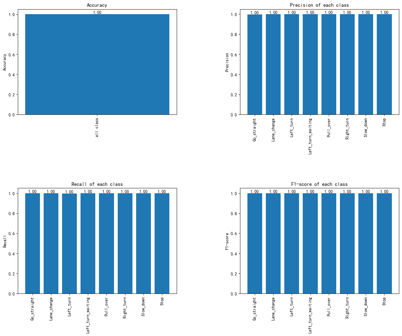 图5 各类的分类性能评估:准确率、精确率、召回率与F1分数图