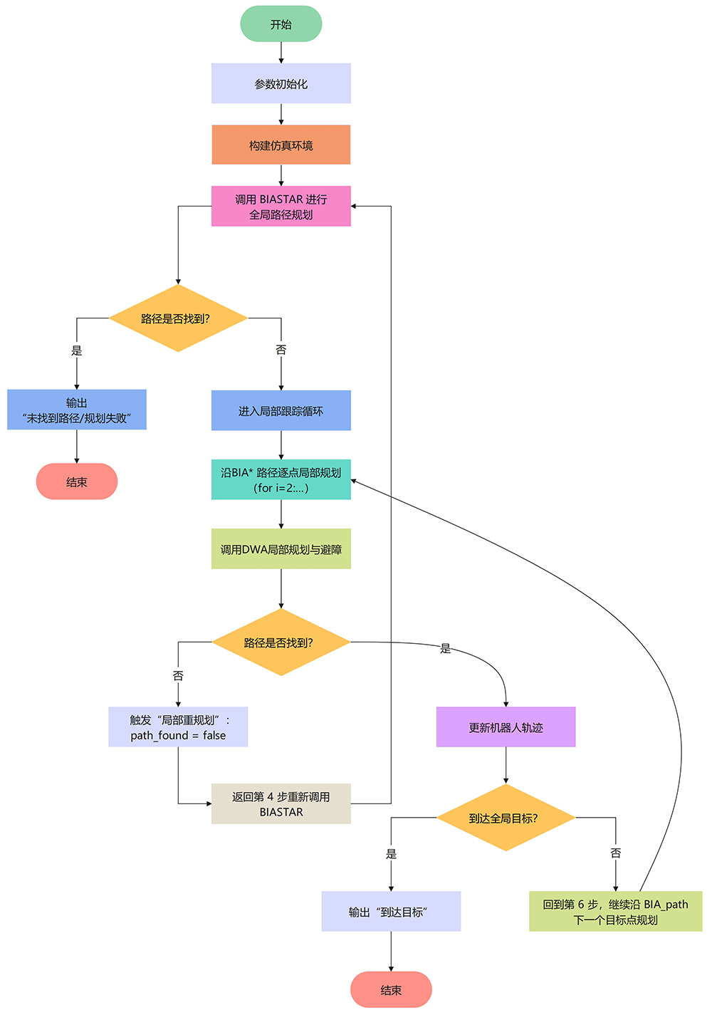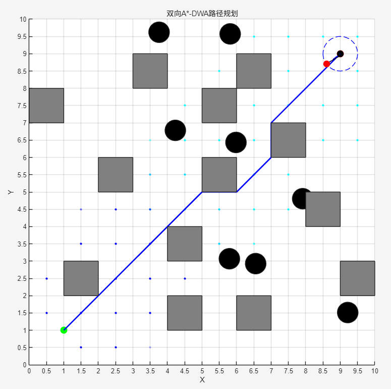 图2 基于双向A*与DWA的全局–局部协同路径规划仿真结果