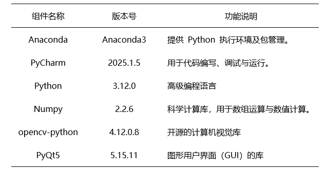 对本实验所需的各类软件及工具的基本信息进行了清晰汇总。