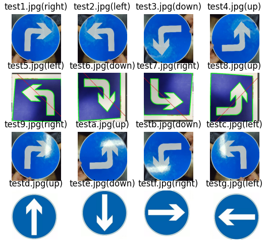 每个图像旁的标签标明了箭头指向的方向,符合进行的图像方向检测任务。检测了图像中的箭头方向,并通过卷积运算或其他方法将方向识别结果显示在文件名中。展示了方向检测的准确性和有效性。