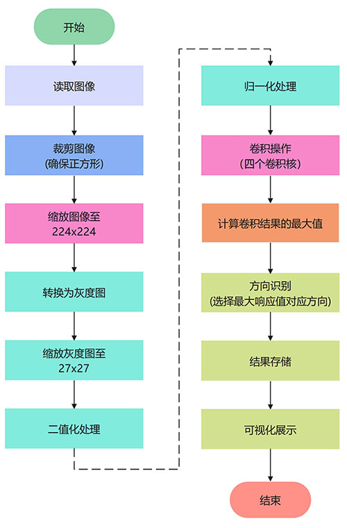 本系统基于OpenCV库,设计了一种图像方向检测方法,通过自定义卷积核对图像进行特征提取和方向识别,旨在实现高效、准确的图像处理与分析。