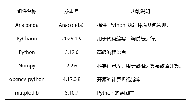 对本实验所需的各类软件及工具的基本信息进行了清晰汇总。
